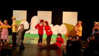 Hannah fits right in with the high school crowd. She will be a freshman next year. She will be a major contender. Not only did she prove herself to be as great actor (hence the best bird in the yard), an untouchable singer, but she proved that she works harder than any of the other high school students. She never missed a set building day. She handled all the cordless mics. She was the last student to leave because she was working. She also defended the underdog and was a joy to be around. Those high school students should feel intimidated. She is a contender. She has made her mark.