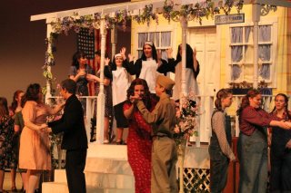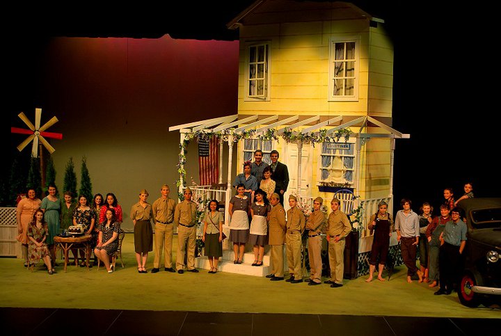 The thought of “family” includes the community when it come to theater, especially educational theater. On the set we have brought together people from all walks of life that may not have come together otherwise. It’s friend helping friend; neighbor helping neighbor. The ideal American traits of friendliness and generosity were exemplified in a barn-raising. Barn-raising wasn’t something that one family alone completed, with the neighbors standing around watching; the whole community took part, helped, and celebrated. Working on the show reminds me a barn raising.