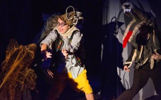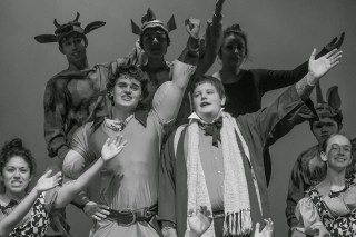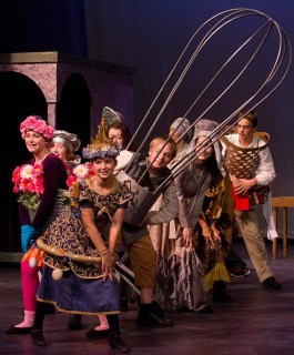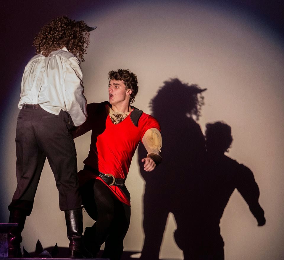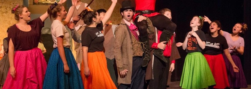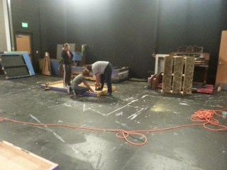 We then practiced making flats in the tech class and made this flying wall for Gaston’s pub. We learned about the rigging system as we safely got the 16×24 foot wall to fly.