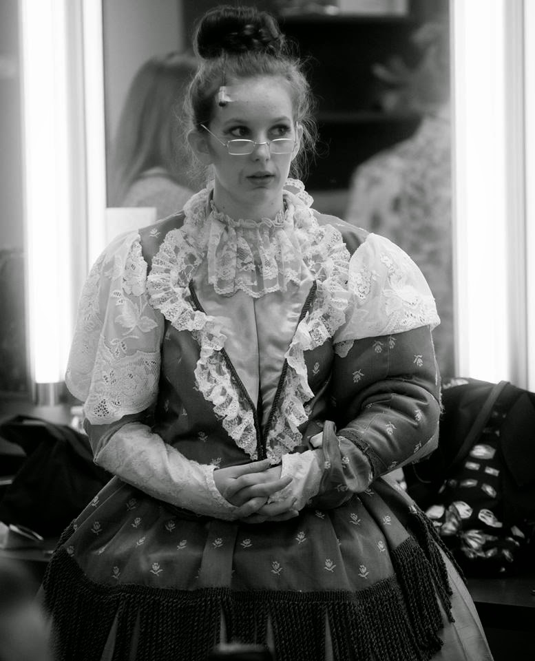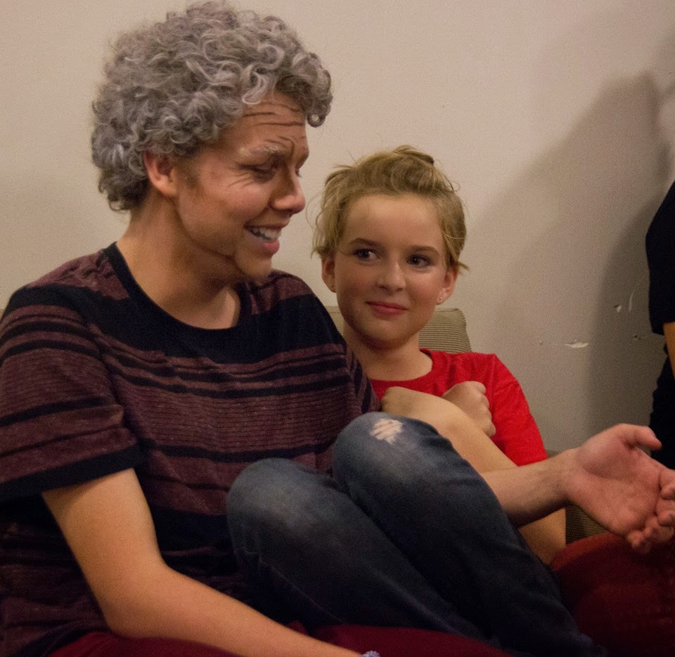 I also ended up doing make-up on this show. I can crank out a ton of “old age” make up in very little time. But I wasn’t interested in making a new mustache every day. We didn’t have any “facial hair” so I found this wig in the closet that appeared to match the actor. I straightened out what I could…