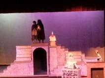 This production also teamed me up with one of my favorite people, Jeff Witt. Sadly, Jeff got sick during the two weeks of blocking. I ended up blocking the whole show for him because a) he couldn’t come to rehearsal because we has so sick and b) I didn’t make a model for him and he wasn’t exactly sure how I intended the moving units of the set to work with the blocking. The concept was that the rose and the rolling stair unit would come together and break apart throughout the show symbolizing how the Beast and Belle would break apart and come together throughout the show. I think the idea worked beautifully.