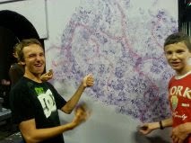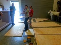 … and we use sponge rollers to create a texture effect on the floor. We split the class into groups and rotated them through the different techniques to give them all a chance to learn skills with each application.