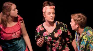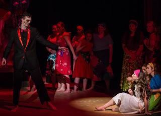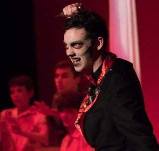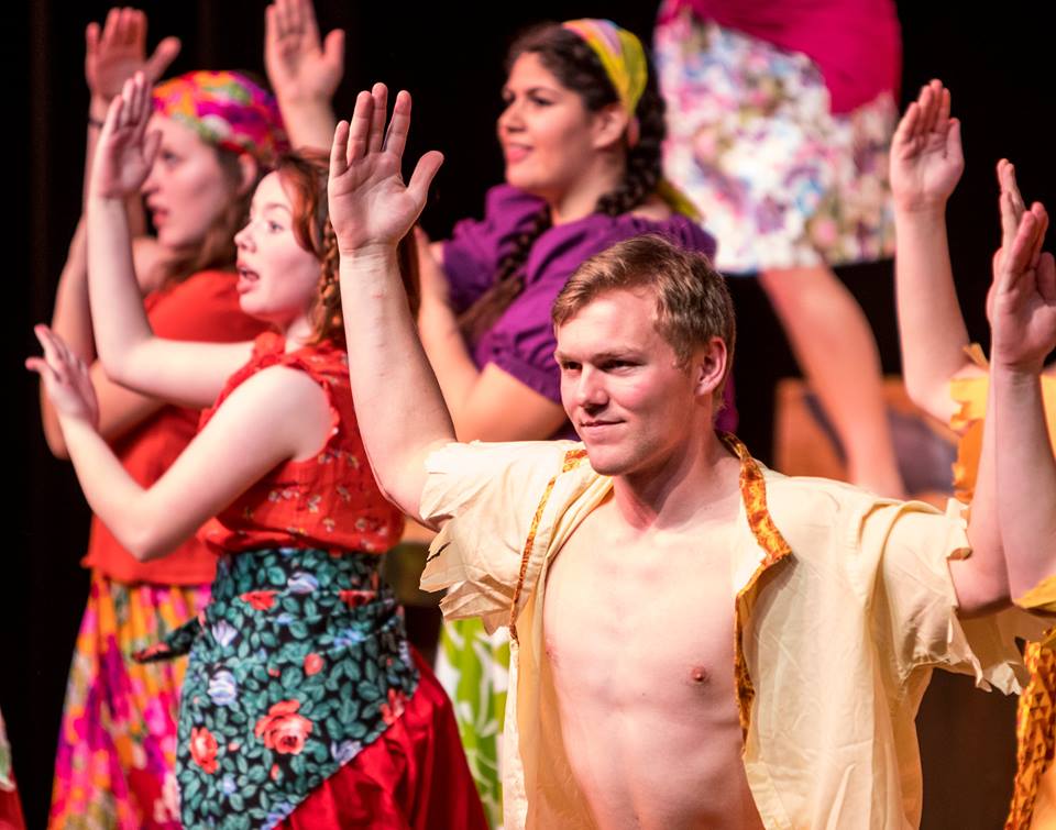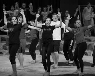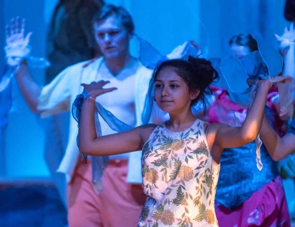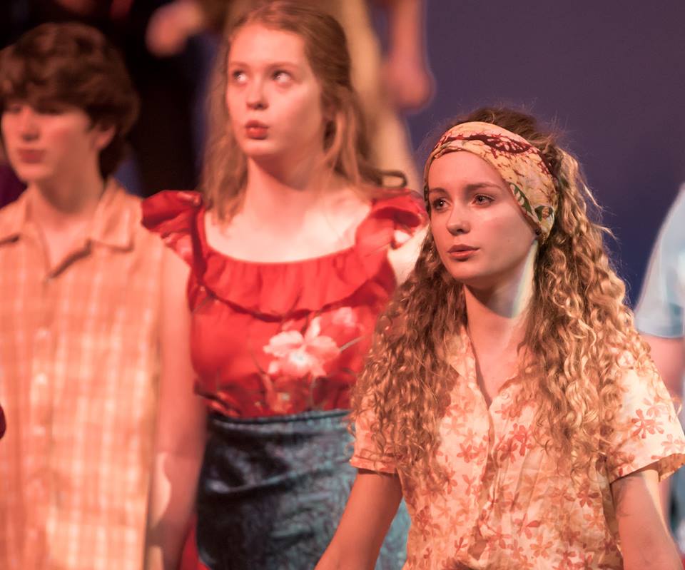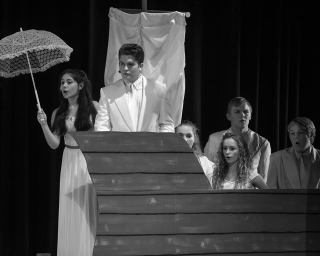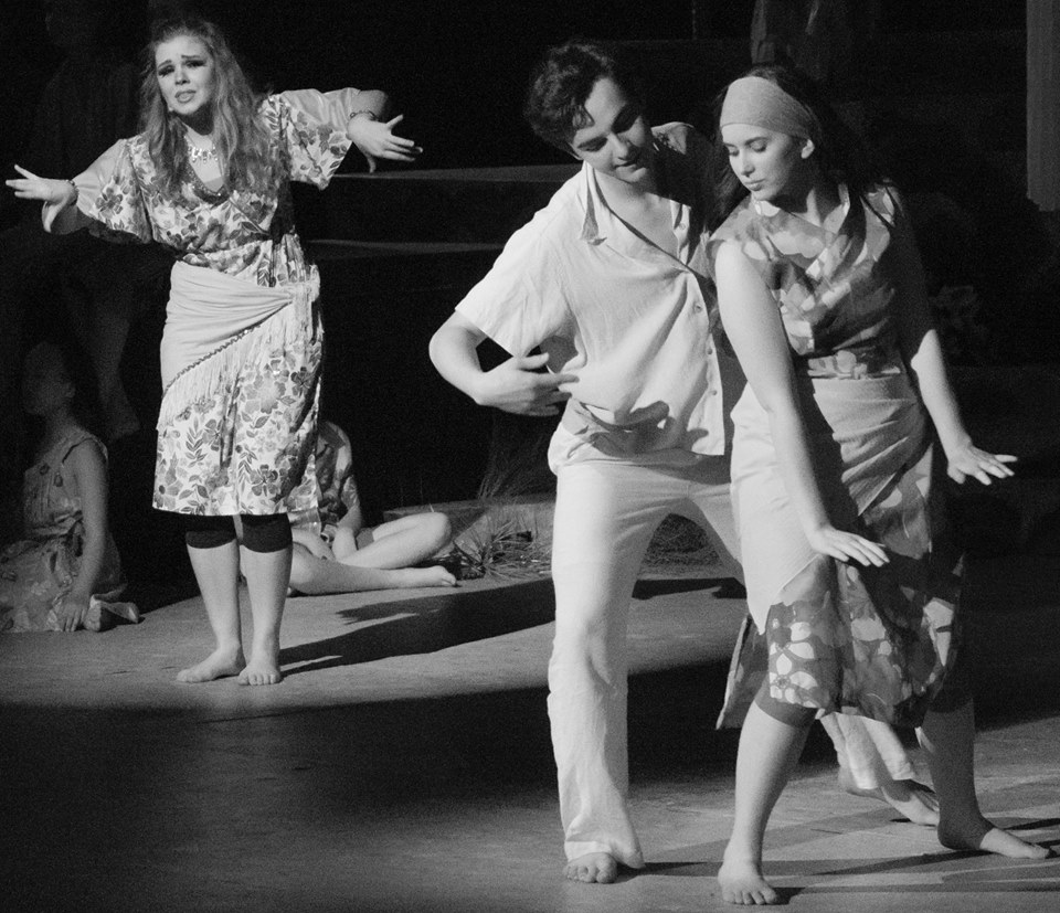 Rehearsals were a little crazy because the stage was booked. We danced and blocked scenes all over the school. I had to create a set on wheels. Everyday we moved the set on and off, switching from concert mode to the the play. Sometimes we would switch the set on stage up to 3 times. It was crazy!