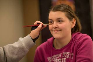 I broke my fingers during the rehearsal process. Still I was able to help with make up (that is my hand).