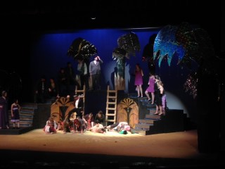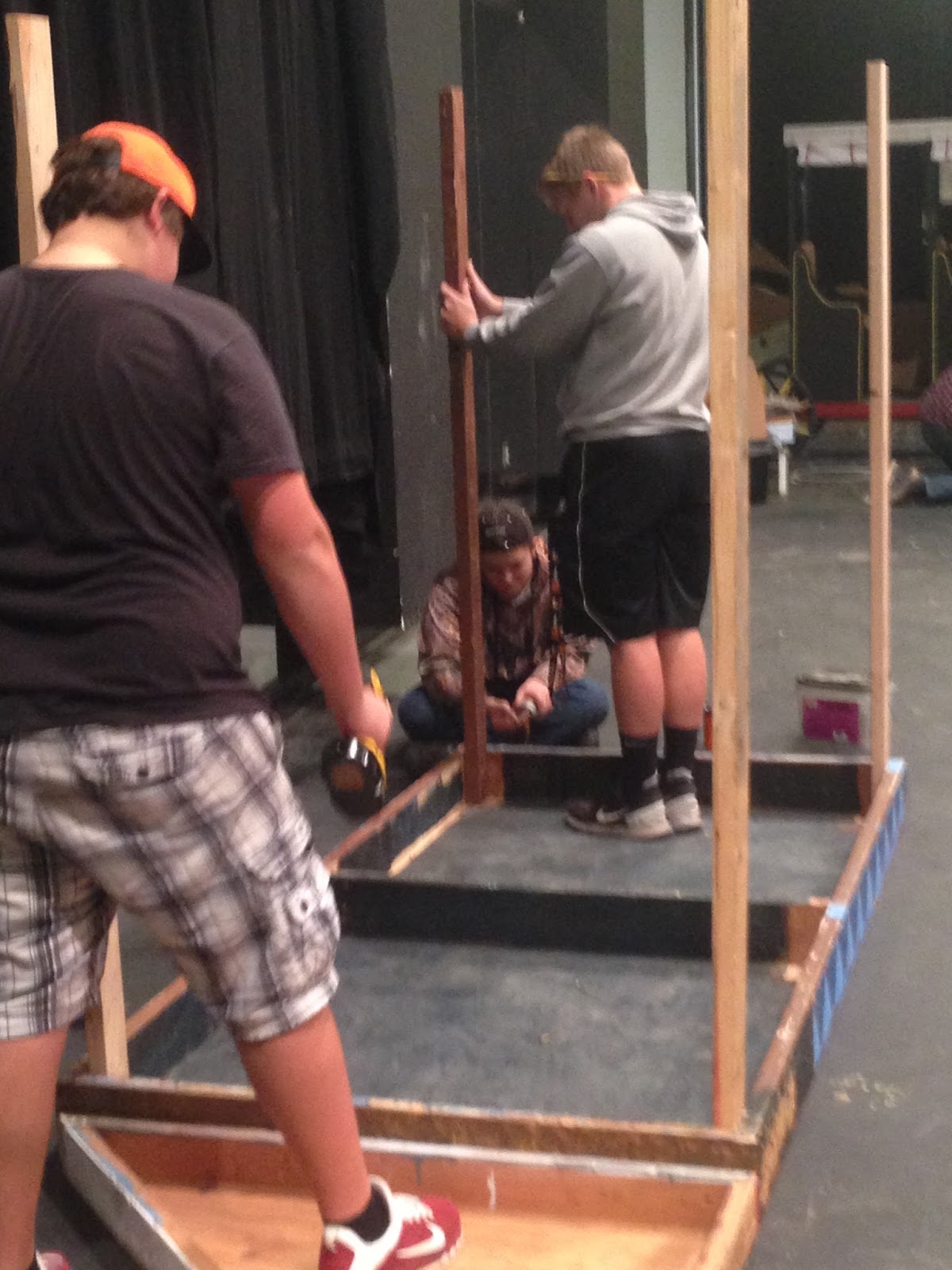 We sent in a recording to the State Thespian Office and entered the show for competition. That meant we had to carefully take the set apart and store it until we find out if it goes to the State Convention in late March. It’s a long shot, since we have only been a Thespian Troupe for 1 year… But I loved how the show turned out. In addition to the set, I was also responsible for the light and sound design. The light design was fun. I know what I have and how to use it best in my space. The sound was challenging because I was working with a new sound board. Listening to the recording I am impressed with how it turned out.