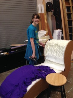 I drew on my memory of my Grandpa White and taught the students how to upholster the chair.