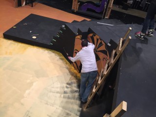 This meant that the art deco painting had to be altered a bit to make both sides of the stage to match.