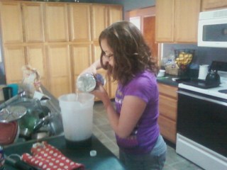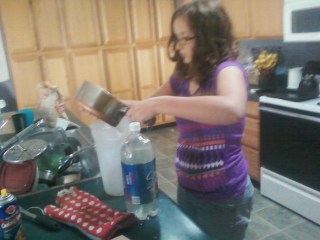 She followed the directions on the Root Beer box. She boiled some sugar and water. I wasn’t fast enough with a camera so I didn’t get a record of that part.