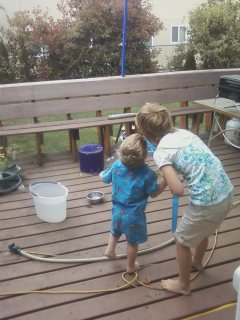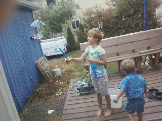 This week our summer adventure included bubbles. I’ve been putting it off because the weather has been unseasonably cool… and even rainy. We decided to use a few dry moments and make bubbles.