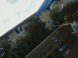 Lillian loved making the BIG bubbles.
