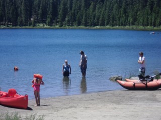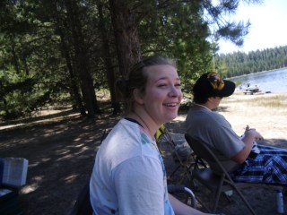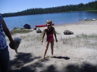 Lillian was in and out of the water. Mountain lakes are a little colder than she expected. To warm up, she rolled in the dirt on the shore. I don’t think this shoreline counts as sand. She was one dirty girl.