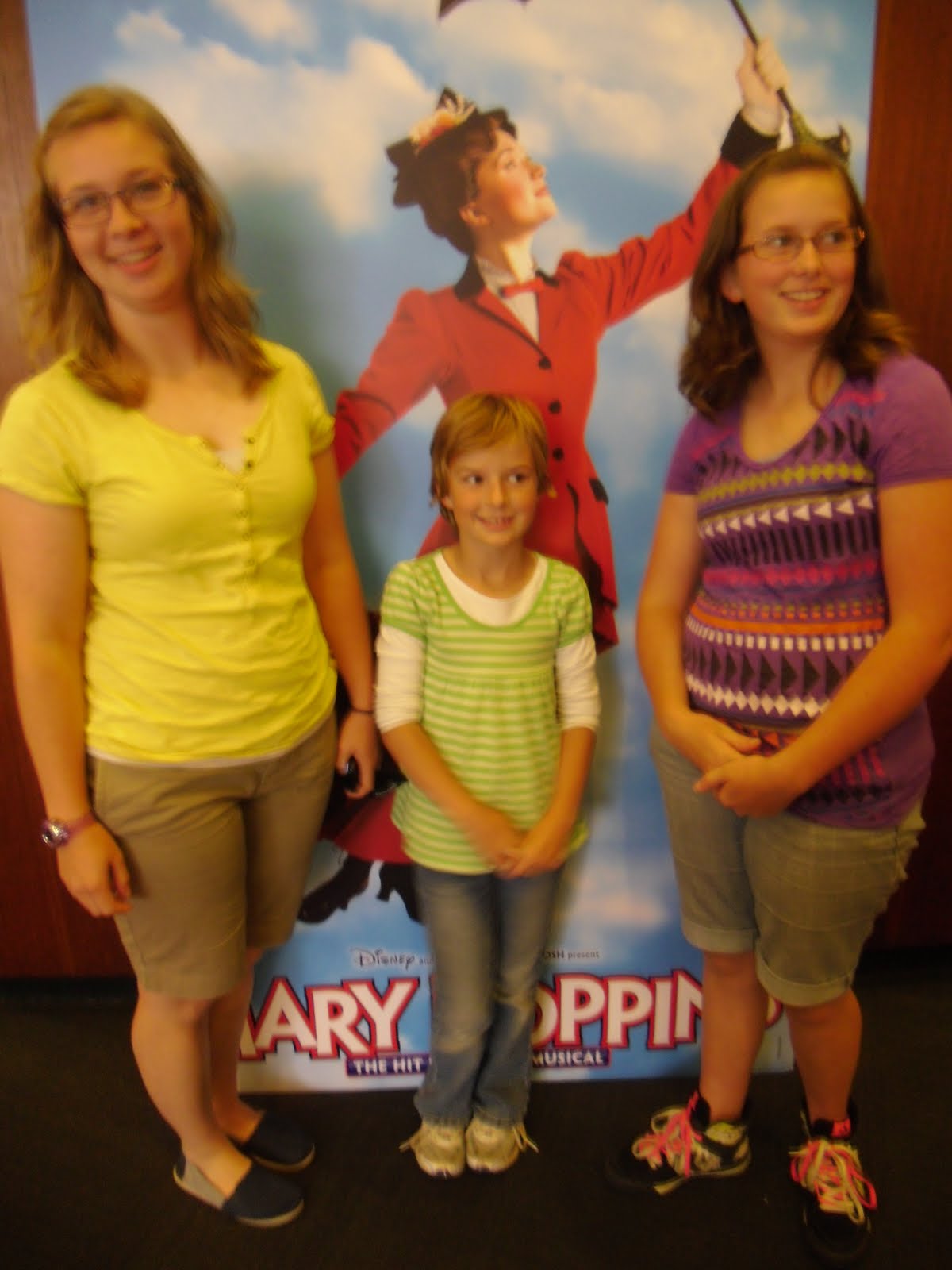 We all loved the play. It is so much different than the movie. At first, it stress Lillian that they were messing things up. She kept asking how they did things… breaking “set” pieces, flying people and things and TAPPING ON THE CEILING! The choreography was fun and the songs, even the added music, kept our toes tapping.