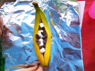 After 10 minutes we took it off the coals and enjoyed! I didn’t even miss the fact that I no longer can eat ice cream. It was just as yummy as a Banana Split! This treat was a HUGE hit! We also made S’Mores. These are always a big hit with my kids. Maybe it’s the sugar. LOL.