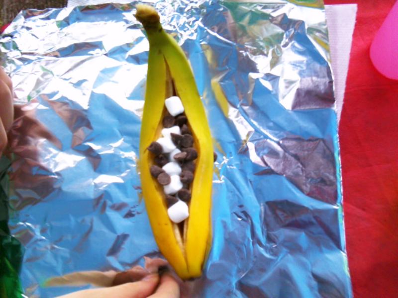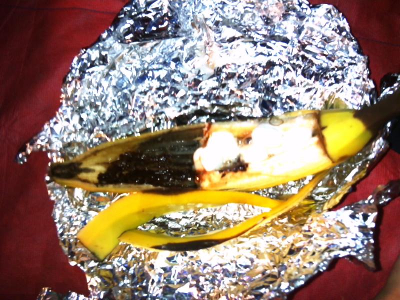 After 10 minutes we took it off the coals and enjoyed! I didn’t even miss the fact that I no longer can eat ice cream. It was just as yummy as a Banana Split! This treat was a HUGE hit! We also made S’Mores. These are always a big hit with my kids. Maybe it’s the sugar. LOL.