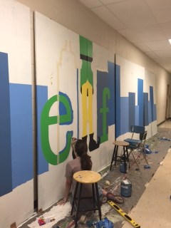 Meanwhile, Hannah played with Dylan and worked on a couple jobs to help pay for her next semester at Willamette. She made a cheese cake. She made some cds. and painted a drop for a show at a charter school in Salem. It works out nicely.