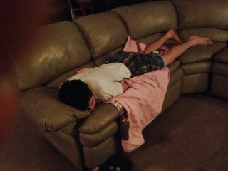 Chad is often found doing this. School is wearing him out. Hannah and I dream of the day we can do that in a couple of weeks. 🙂