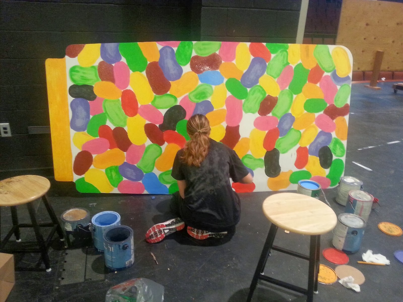 We started working on Willie Wonka and the Chocolate Factory (to be performed at the CHS at the beginning of February.) It’s a big undertaking. There are lots of pieces to the set. Rather than a pink candy boat, I decided to go with a giant newspaper boat.
