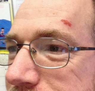 We did have a casualty as we were hanging the 16 foot jars on a baton…. John walked into the bar. Rang his bell a bit.