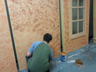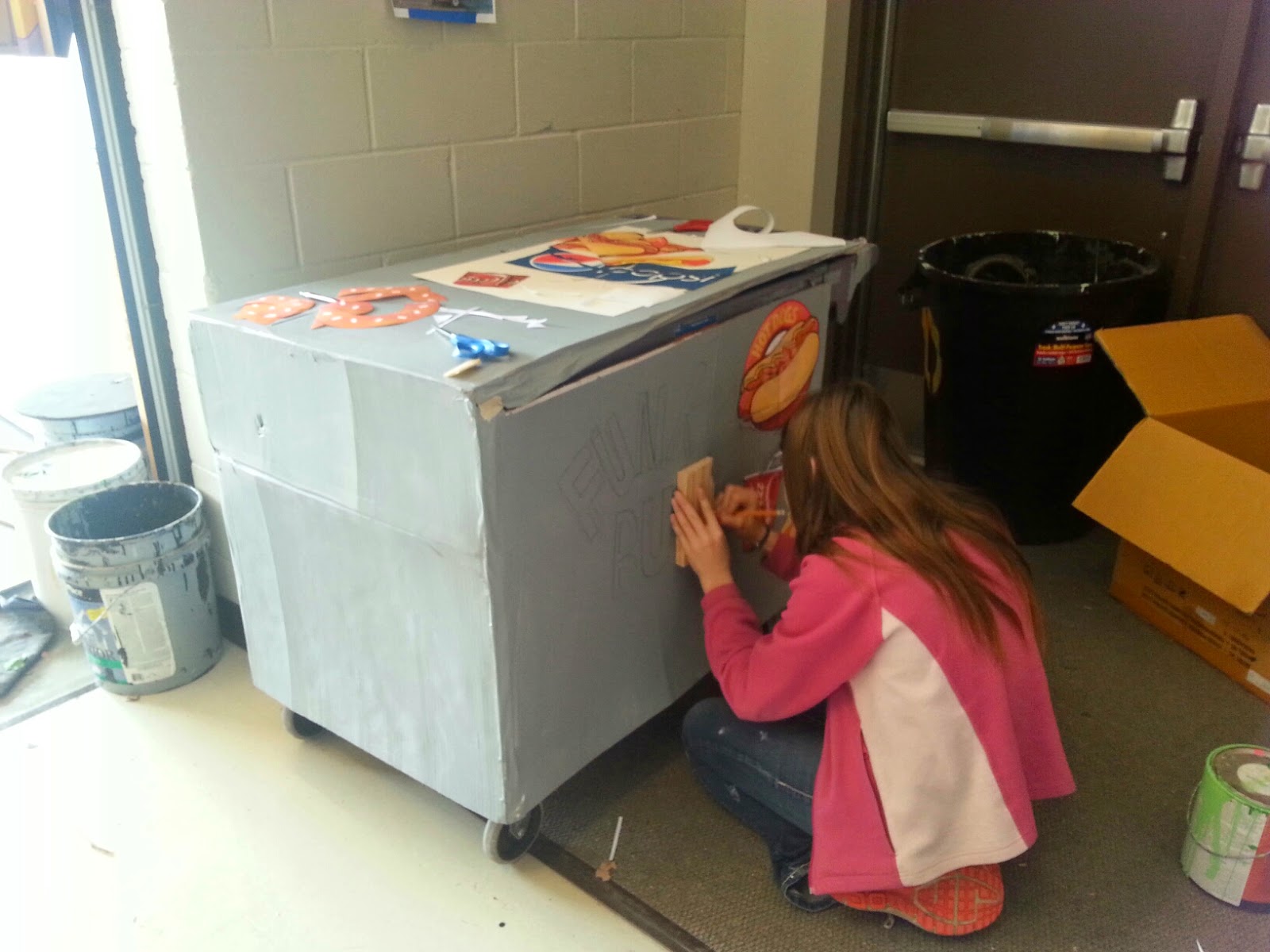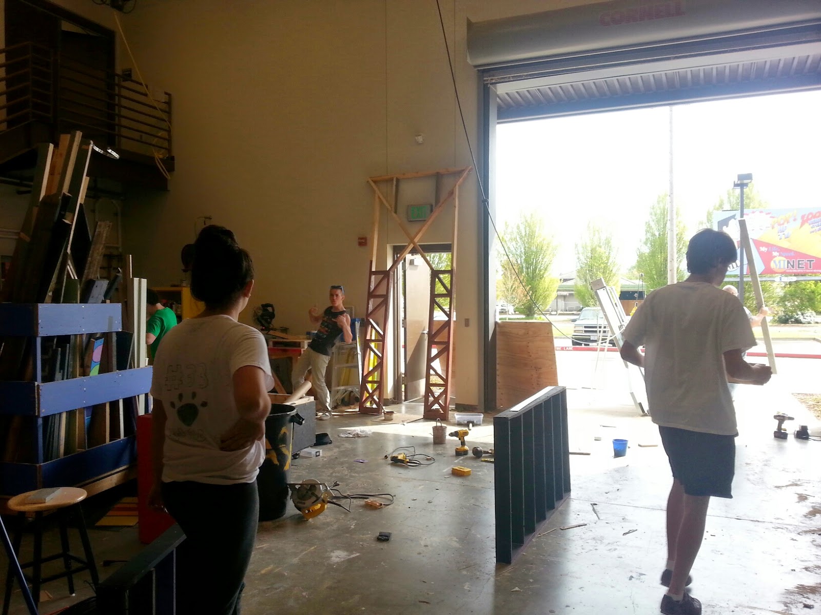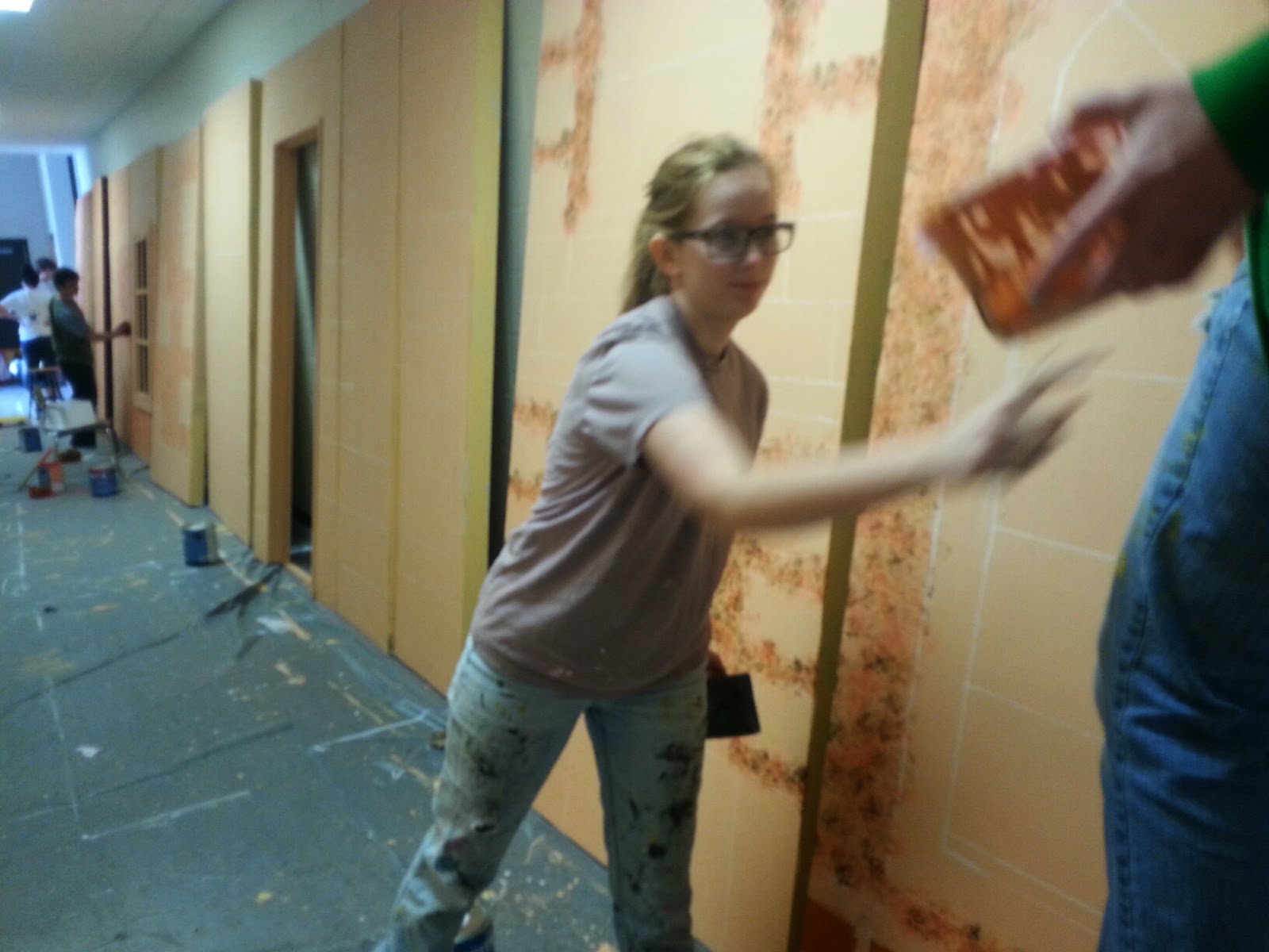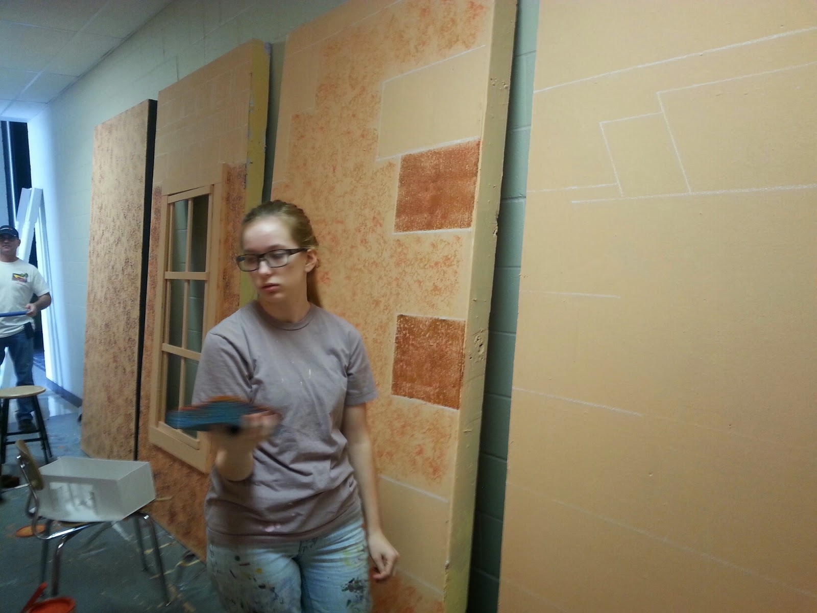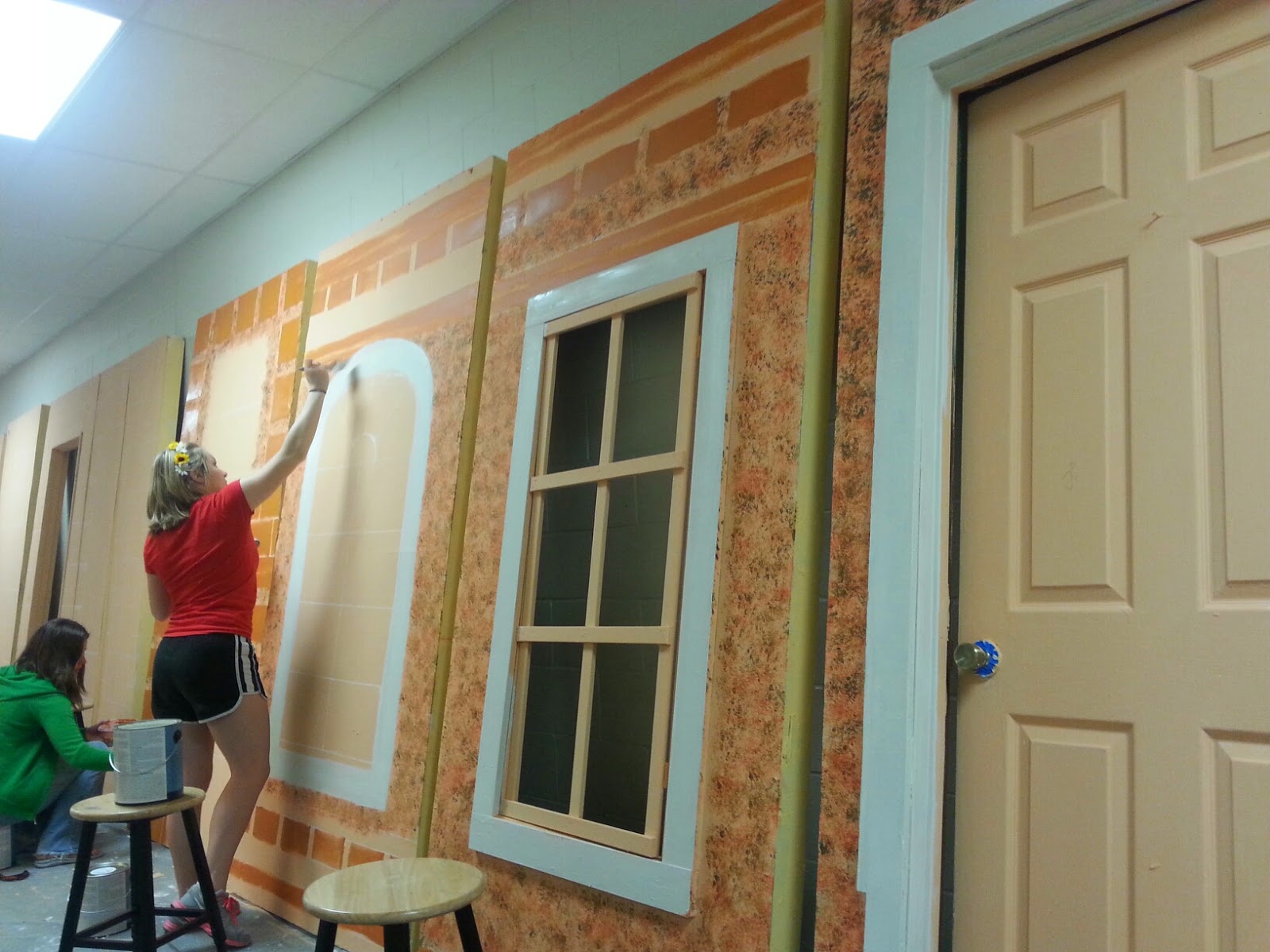 We spent two Saturdays working on the set for Into the Woods. The stage was full of the sound shell for all the concerts and events that were scheduled in the auditorium, so we painted the flats in the hall. When every thing was finally able to move to the stage we successful got the set up and finished in ONE WEEK! I was so pleased. Really, the only reason we made it was because of the great help I got… including from my friend John Hatch. I love how fast he works and how he just understands what I need to be done.