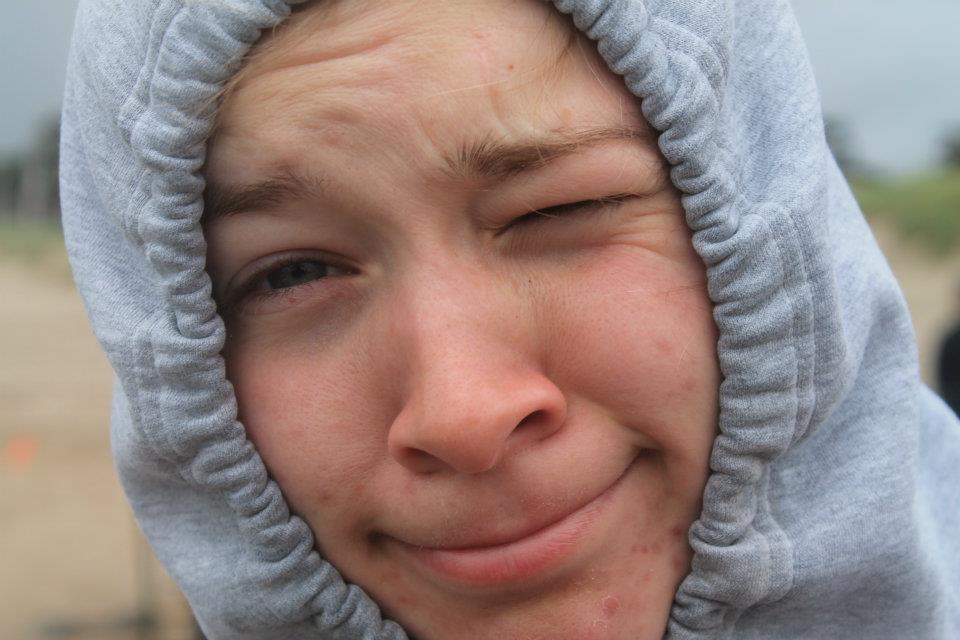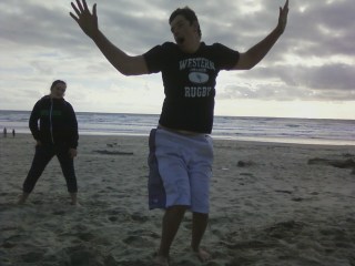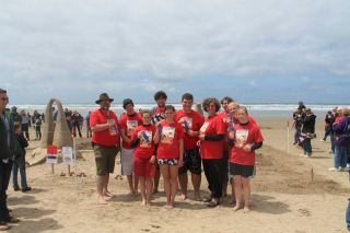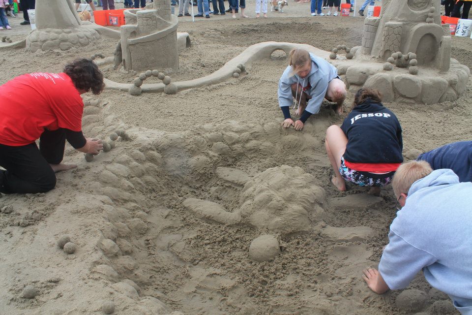 Even Myles was on the team. It is hard word. It was pretty chilly too. Hannah and Myles learned to make sand balls.