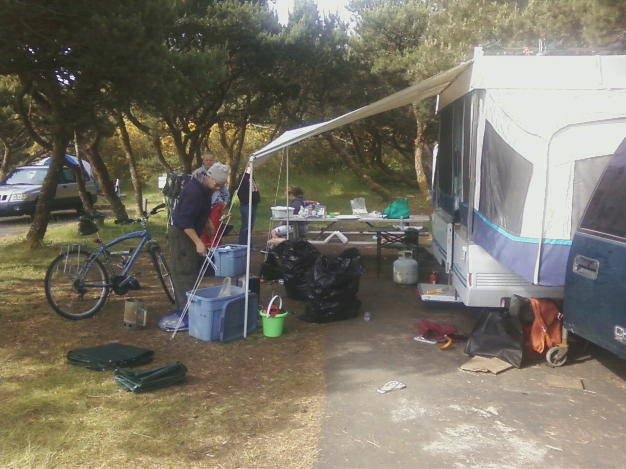 If you read my previous post you will remember I don’t really like camping. This trip really isn’t much different. We started later than I wanted to. I decided go up through Forest Grove and down to Seaside before cutting south to Cannon Beach. I thought the straighter roads would help with car sicknesses that plagues my family. I was wrong… I heard the window go down, a few coughs and sputters, the window go up and a small little “I’m sorry mom.” I looked out my side view mirror and saw the whole side of the car covered in throw up. I thought the pouring rain would wash it off. I was wrong… We had to hose off the car and the camp trailer when we got to camp.