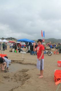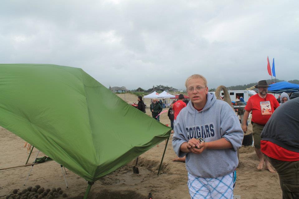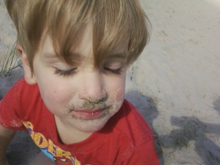 The team placed 4th…. that is a step up from last year. They got $200 and a ribbon for participating.Case came to visit it on Saturday. When I told his mom that we were going camping, she made reservations in a different camp ground. They drove up to see the castle and stayed to play for the afternoon and evening. Case found great pleasure in pushing the sand around with his nose. At one point he had a big booger hanging down, completely encased in sand. Chad asked him to look up and the wind blew the booger in his mouth. Case started CHEWING! We all started screaming!