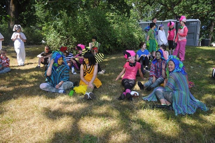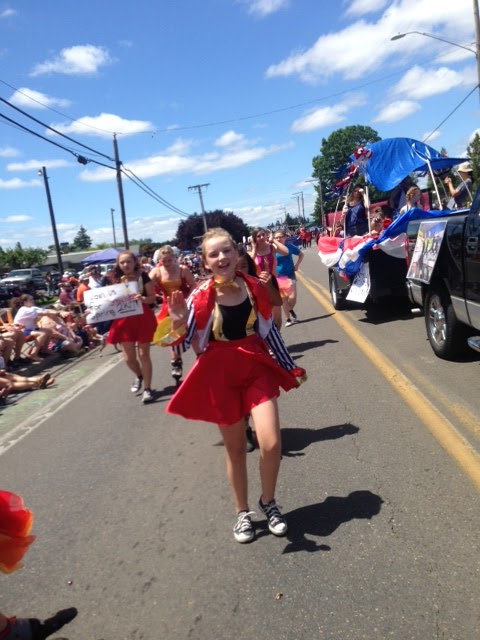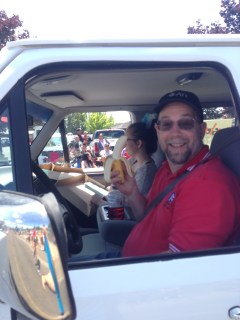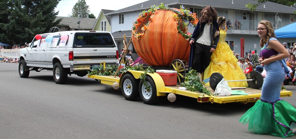 We borrowed a truck and John and Hannah helped support the Thespians float