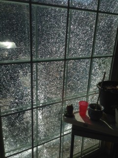 The back window shattered. We didn’t have a door/window for a couple weeks. Sometimes it got cold. On a day like today I could use that cold again.