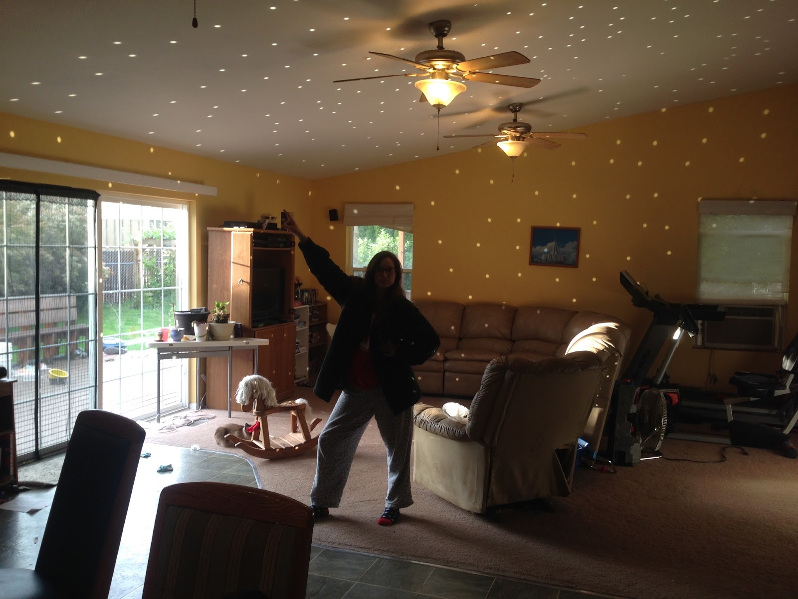 Janey donated a mirror ball for the theatre. I procrastinated getting it to the theatre. Every morning when the sun hit the ball we got to PAR-TAY! LOL.