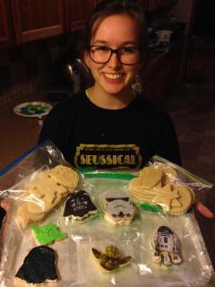 She made Star Wars cookies because her Secret Santa recipient in her choir loves Star Wars.