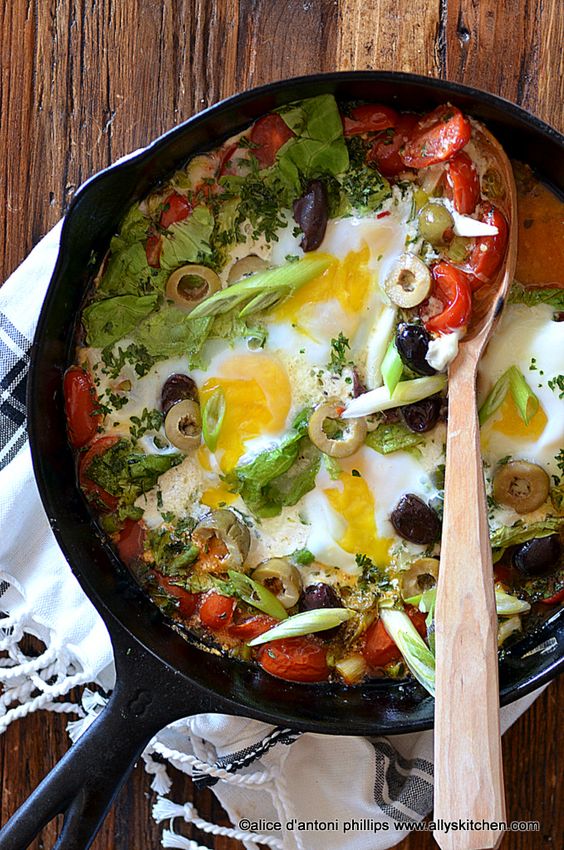 I chop zucchini (from the garden), onion, mushrooms, and saute them a bit. Then I add tomatoes. Sometimes they are fresh and sometimes they are tomatoes I canned from the garden the year before. I bring it to a boil. Then I crack open eggs and plop them on top. (I am lucky to have eggs from my chickens in the yard too!) Sometimes I add fresh spinach too. I then top it with Vegan mozzarella cheeses, cover and let it simmer for about 10-15 minutes. MMM… I’m hungry thinking about this one.