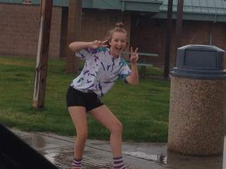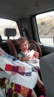Lilli was so excited to be going home that she danced in the rain we found in Idaho.