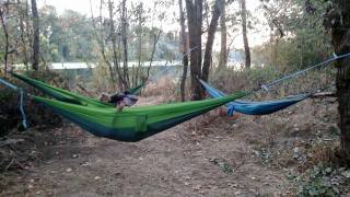 He got these hammock things to sleep in. I’m not sure I could do that.