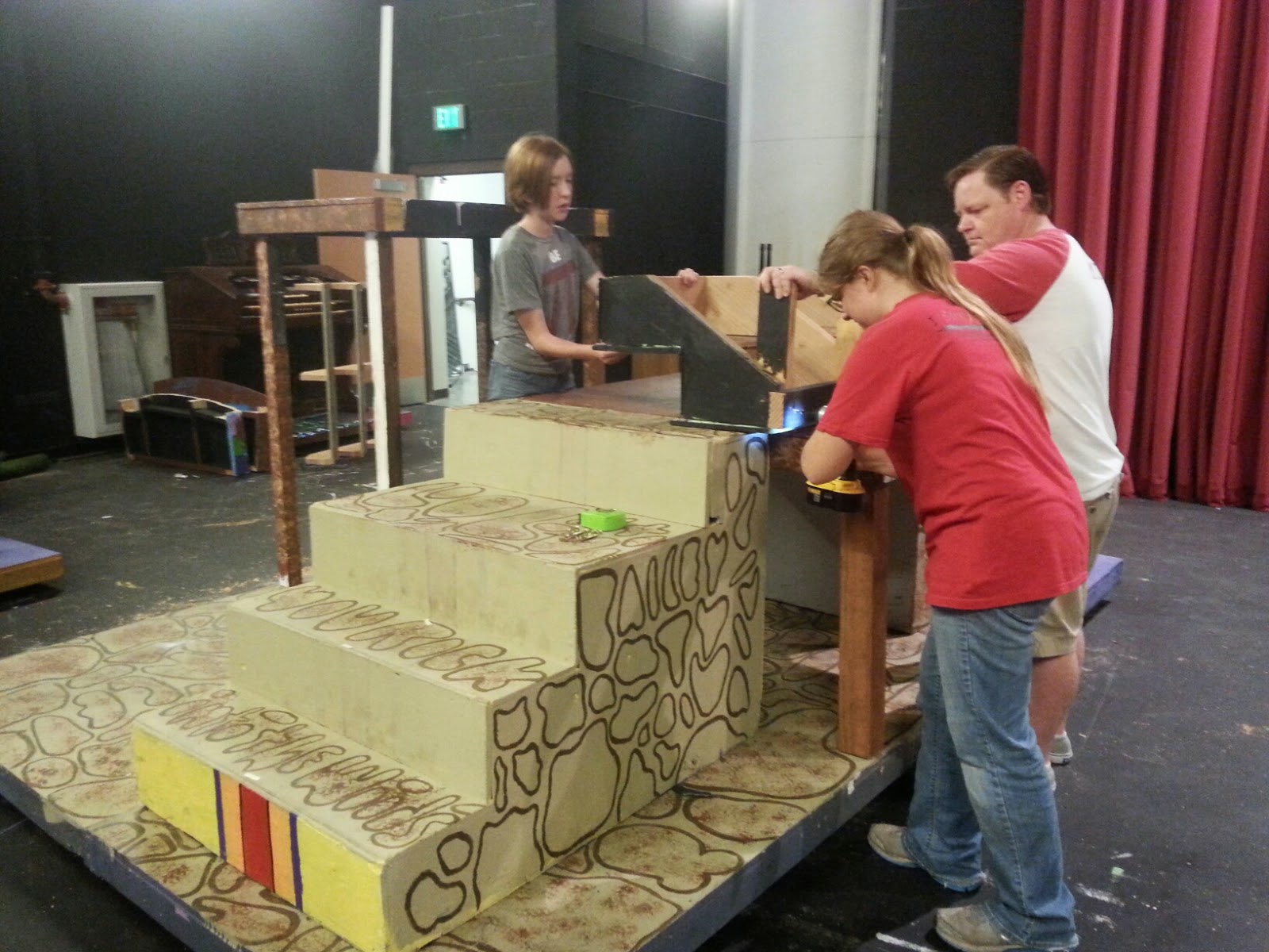I will write more about the set in the Beauty and the Beast blog. Just know that we created multiple rolling stair units and a couple flying walls. There are so many scene changes in a short amount of time! it’s even worse when it’s a Junior version… which we are doing.
