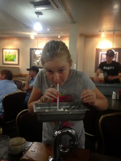 Hannah, once again, traveled in style. I am sure that all the people at all the places we stopped (Wal-Mart, gas station, rest areas) were all jealous that that weren’t as stylish as Hannah in this outfit.