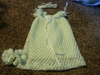 … and this blessing dress, booties, and head band for Lenayah…
