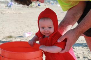 | I couldn’t resist adding a picture of Ben getting to play in the sand for the first time…. even if I wasn’t there. |