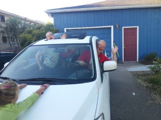 Early Saturday morning McKay and Myles climbed into his “CAN” (car+van) and drove away. (weird to see a person’s entire life stuffed into one small car). Lilli didn’t want them to go. Chad stayed in bed. Kimber and Ray had gone to the beach with the rest of the Jessops. Only Hannah, Lilli, and I got to wave as they drove off down the road. I was grateful that the day was my friend Rachel’s birthday. I needed a distraction and drove to Salem to give her a present. I then had a therapy appointment for my sore Achilles before heading home again to do chores. That evening I went to dinner and to see HMS Pinafore with my friend Megan.