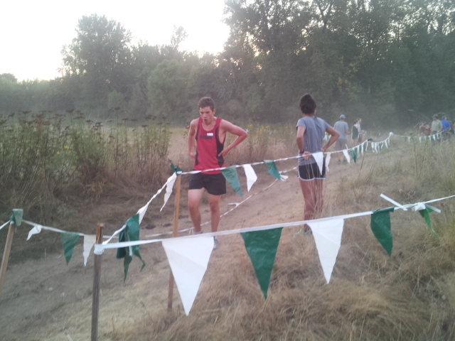 He isn’t the fastest guy on the team so he has to start the race a row or two behind the faster people. I don’t see how they all run. I’d think you’d be stepped on… a little like a stampede. Still, his start was ok.