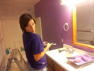 I like it. Besides, it’s my bathroom. I know he’d like to claim it, but it is just off my bedroom. He won’t use the family bathroom… only the master bath. It drives me nuts. I am the only person who cleans it. I’d like to be the one that dirties it. LOL. Maybe the girly color purple will encourage him to use the other bathroom. It’s not like he won’t be sharing with the same amount of people.
