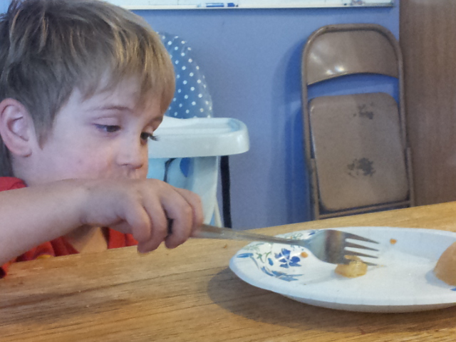 Case has been playing hard and getting ornery. He is pick about what he eats. He throws fights when things don’t go his way. He’s been hitting people when that happens. Check out how dirty he is. This dirt was left over AFTER he washed for lunch. It’s gross.