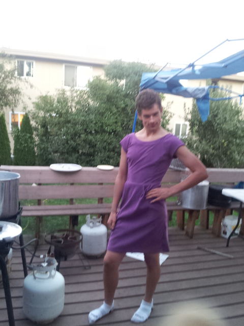 We needed to send a picture of the bridesmaid’s dresses to McKay. Chad decided to “model” it for her and put on Hannah’s dress. It fit…. well sort of. His ribs were just a little too big to get the dress zipped all the way. In case you are worried about Chad and his dress habits, just wait until you see what he is wearing the following week. I think he just has to try clothes to prove that he is skinny enough. Still disturbing.