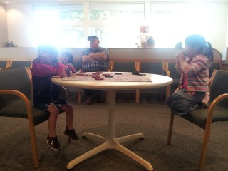 We also had a couple of hours spent at the dentist office this week. Lagi, Case and I sat in the lobby. Case and Lagi decided to play checkers… Well… Lagi called it “tea potty”. They made “sandwiches” and “oreos”, and “cracker cheese” out of the checker pieces and “ate them”. They are a crack up.