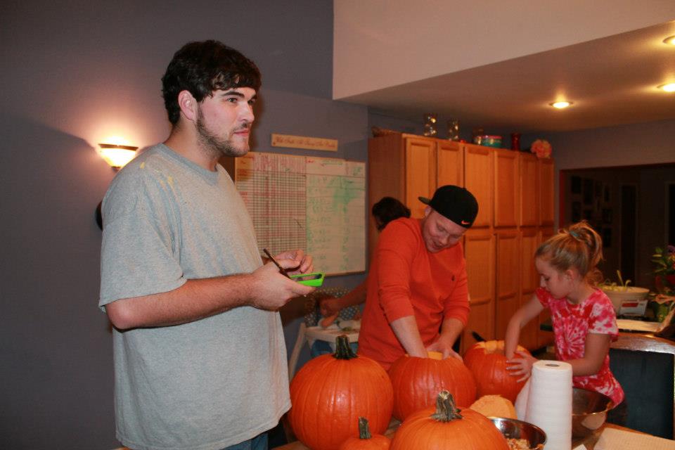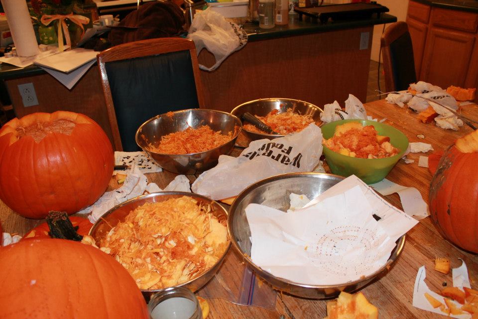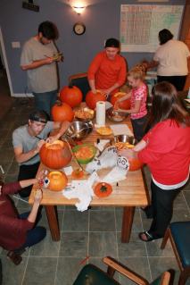 Back at my house they started making a mess.Ray and Kimber’s friends helped Lillian guy her pumpkin. Ray carved a pumpkin. Kimber carved two pumpkins – one for Ben and one for herself. All their friends carved pumpkins. No one else cared to carve one this year. Poor Lillian. She is going to have a deprived life. No one else wants to do things like pumpkin carving and trick or treating and such.