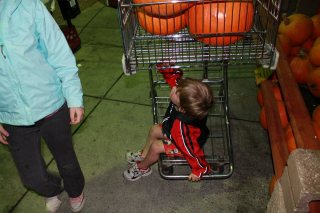 One small problem… they got a late start. The pumpkin patch was closed. so they packed back into the Suburban and headed for the next best place… Roth’s Pumpkin Patch! LOL. If you ask me it is the best of all worlds. Decent prices on pumpkins… no mud… They provide “wagons” to cart things in… and to have rides on…They could even “ride” the farm animals… LOLOLOL!