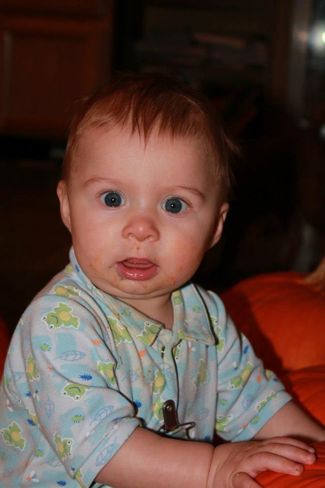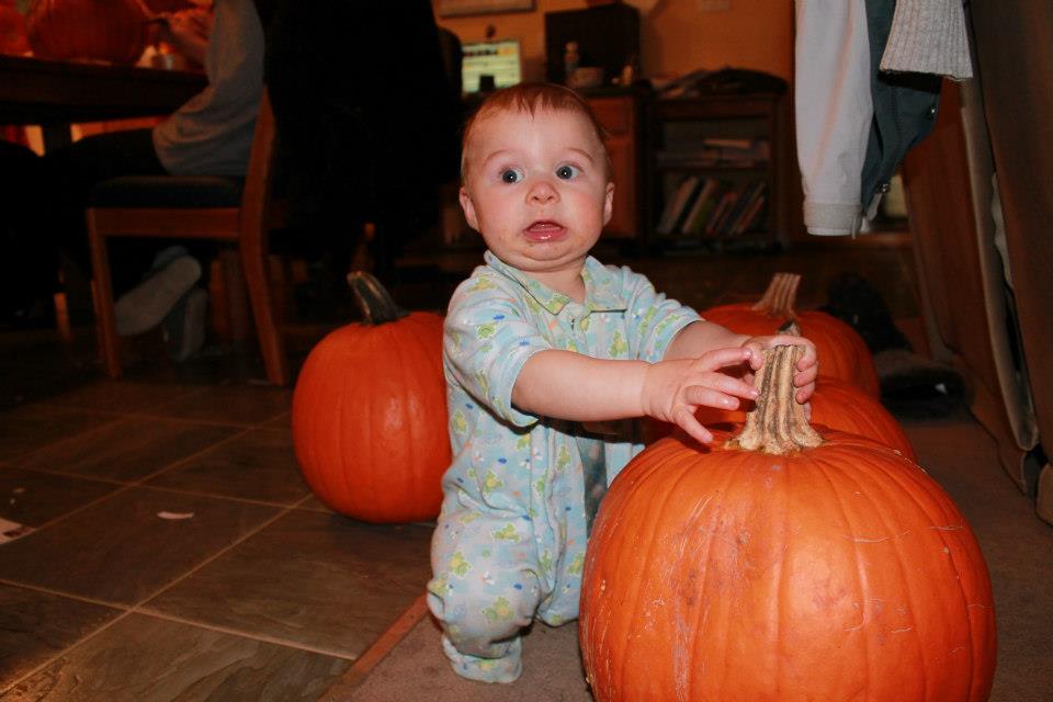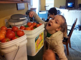 Ben crawled around on the floor. He patted pumpkins. He ate trash off the floor (ewww). Perhaps he feels the same. Look at that face!Lillian and I pulled the rest of the tomatoes and peppers from the garden. The tomatoes didn’t do as well this year. That is a bummer because I didn’t get to can salsa or spaghetti sauce. I did get to make a good amount of Roasted Tomato and Pepper soup.