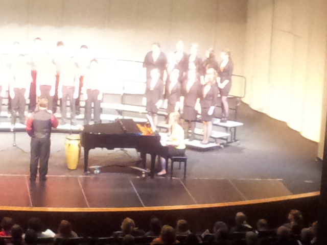 Hannah had her first concert as an accompanist. She played one song for Chad’s jazz choir. She did a great job. Usually, she pushes the tempo. However, she was able to control herself and to follow Mr. Witt. I loved watching her play because the “dances” as she plays. 🙂