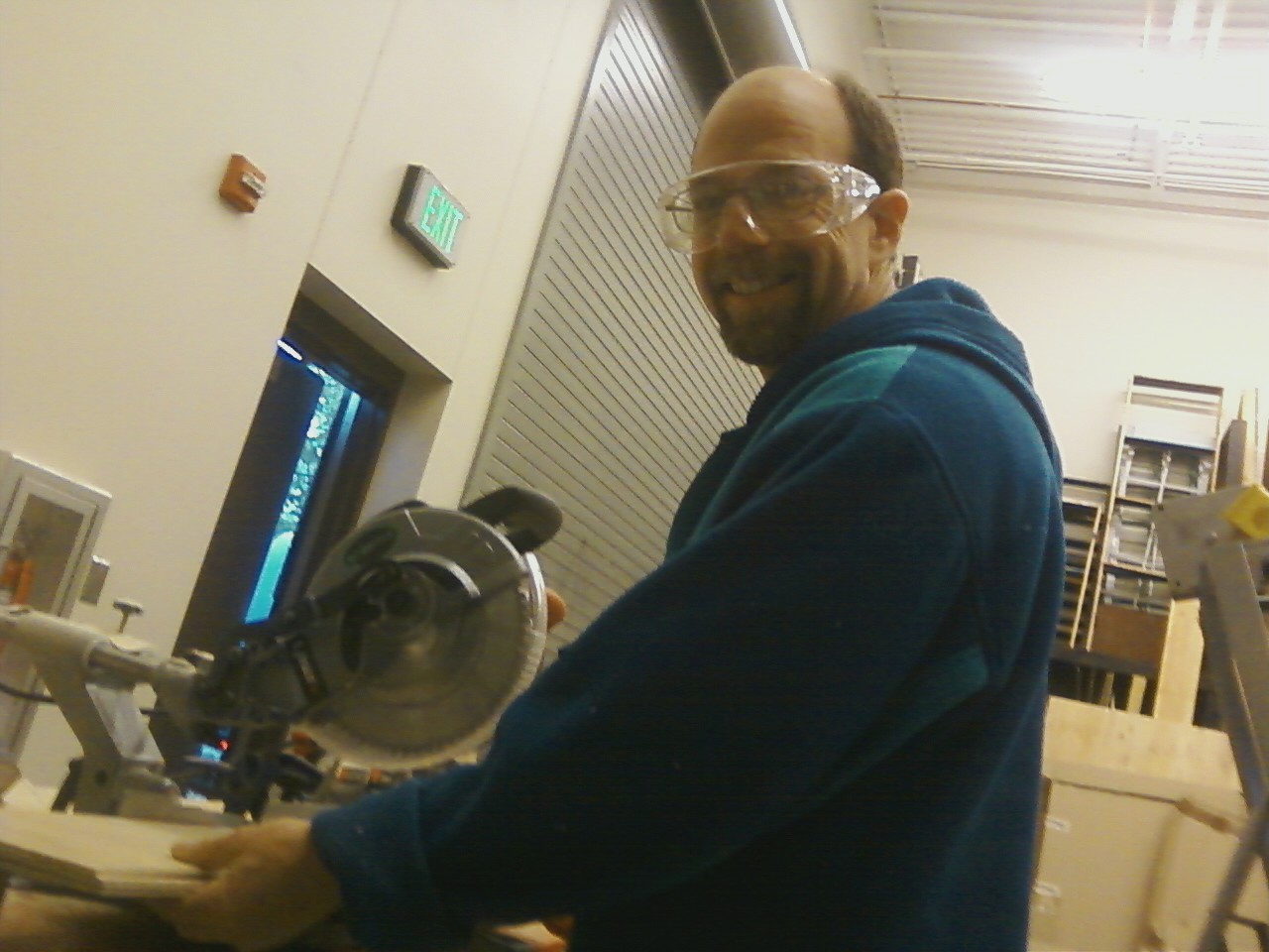 After we got home from CET, John and I went to the HS to cut some wood. John bought a new chop saw for the job. Sadly, it was broken on the 2nd day of work parties at CET.