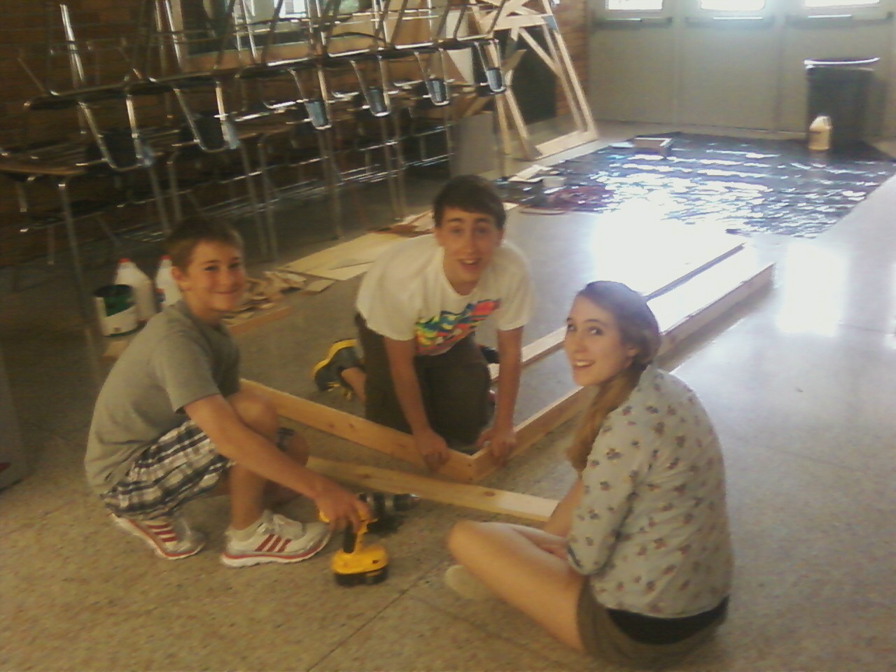 Wednesday was a long day. CET started early for me with a tech class field trip fo make stuff at Pentacle Theater and ended with a work party where a few students and volunteer parents came to start the set. These are a few of my students.