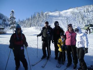 Early the next morning Ray and Kimber dropped off Ben and picked up my Suburban, Hannah and Lillian. They all headed up the hill with the rest of the Jessops to ski at HooDoo. This was Lilli’s first try. We convinced her to try skiing rather than snowboarding. It turned out she is a PRO. She was out skiing her sisters before long and got off the bunny hill by the afternoon. Hannah abandoned the snowboard for skis too. It turns out that she likes skiing better too. She was still pretty nervous. One time she went up the lift with Kimber and Lilli. Kimber hopped off and was feeling pretty pleased that she did so well getting off the lift. Then she heard Lilli say, “Hannah! What are you doing?!” Hannah was still oon the chair lift and heading around the turn to go down the hill. The worker guy stopped the lift, radioed down to the bottom and somehow got Hannah off. Silly Girl. After lunch, Kimber borrowed Yvonne’s skis and tried skiing too. She liked it! She may even turn in her snowboard for skis for furture slope adventures.